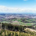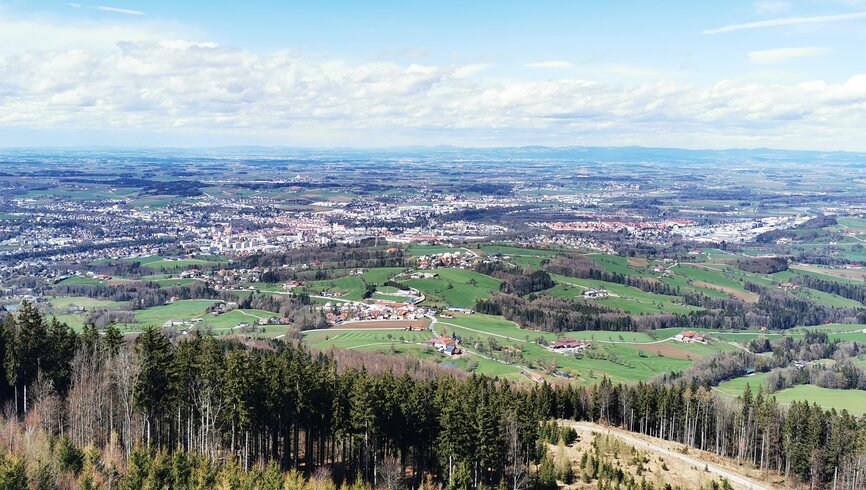 Die einfache Strecke ist optimal, um sich mit den unterschiedlichen E-Modi von Eco bis Turbo vertraut zu machen, die bald darauf beim ansteigenden Flößerweg dankbar zum Einsatz kommen. Die breite Forststraße bietet mit sanften und steileren Anstiegen ein gutes Übungsterrain und die am Weg liegende Laurenzikapelle lädt zu einer kurzen Rast mit herrlichem Ausblick auf Steyr. In weniger als eineinhalb Stunden erreichen wir unser erstes Etappenziel, den 811 Meter hohen Damberg und haben in etwa 15 Kilometer und knapp über 500 Höhenmeter zurückgelegt. Hier macht sich der Unterschied zum „normalen“ Mountainbike bemerkbar: Mit E-Support erreicht man mühelos Geschwindigkeiten um die 17 Kilometer pro Stunde bergauf ohne zu schwitzen. Wir erklimmen die 36 Meter hohe Warte und genießen das Traum-Panorama vom Ötscher bis zum Traunstein.
