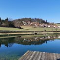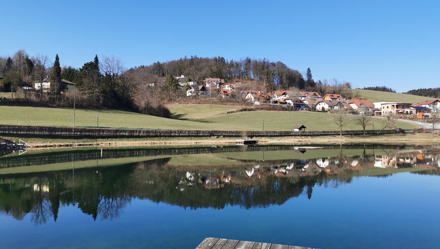 Verträumt genießen wir im Abstieg den ebensolchen Waldabschnitt begleitet von quirlig-gelben Zitronenfaltern. Wir verlassen den Naturpark und nehmen den Schwung der bergabverlaufenden Straße mit, bis wir direkt vor unserem Auto zum Stehen kommen. Wäre es jetzt Sommer, würden wir die 4 Minuten bis zum Rechberger Badesee anschließen, dessen Temperatur wir heute nur mit den Fingern messen. Ein bisschen kühles Nass gibt es aber noch, da wir bei der Heimfahrt beim Herwigsbründl, wenige Meter nach der Ortseinfahrt Bad Zell, unsere leeren Wasserflaschen mit dem erfrischenden Quellwasser auffüllen.